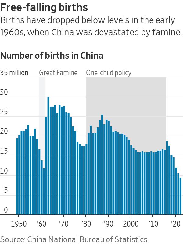 Demographers and researchers predict that data will show Chinese births dipping below 9 million in 2023. The United Nations forecasts 23 million births in India, which in 2023 passed China as the world’s most populous country. The U.S. will have around 3.7 million babies born in 2023, the U.N. estimated.
