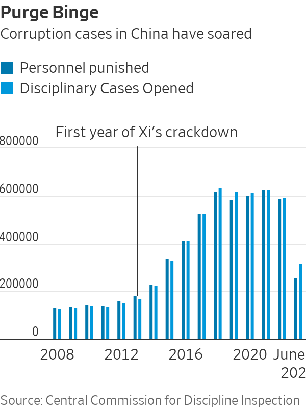 The Chinese leader has instead cast the blame on the moral failings of individuals, while doubling down on his centralized and opaque style of governance, according to a Wall Street Journal analysis of Xi’s remarks, party directives and official data. Only a continual cleansing can ensure the party remains potent and pure, he has argued.