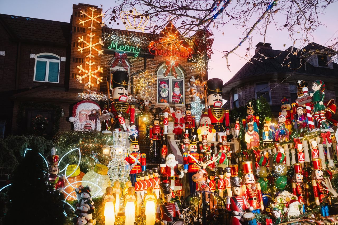 Welcome to December in Dyker Heights, the New York City neighborhood known for its over-the-top displays of Christmas decorations. Every holiday season, tourists pack the sidewalks of this otherwise quiet neighborhood to gawk at 30-foot-tall snowmen, animatronic reindeer and mansions with virtually every surface blanketed in lights.