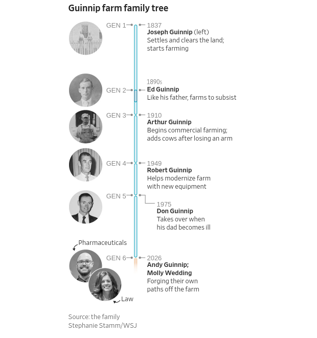 While Guinnip has sole oversight of the acres and animals, his parents left the family farm in trusts that split ownership between him, David, Susan, Sallie and Dan. Every year, Guinnip pays his siblings rent based on the farm’s performance.