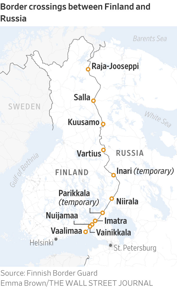 The closure of the border and increased security have hurt Finland’s eastern border region, already the country’s poorest, where local businesses that long catered to Russian tourists are losing the equivalent of €1 million a day, or around $1.1 million. The closure has also cut off cheap timber imports from Russia. The military’s need to monitor eastern Finland with sensitive radar has complicated plans to build wind farms there, said Pentti Makinen, head of the South Savo region of eastern Finland.