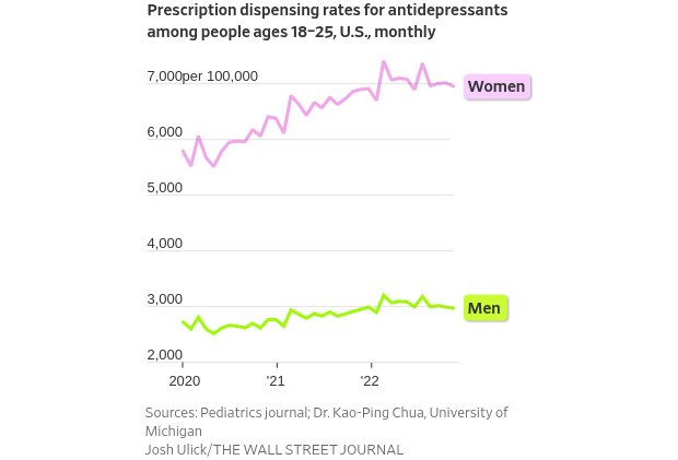 Antidepressant use in the U.S. grew during the pandemic, especially among young women in their 20s and early 30s, according to studies and a Journal analysis of 2023 federal data.