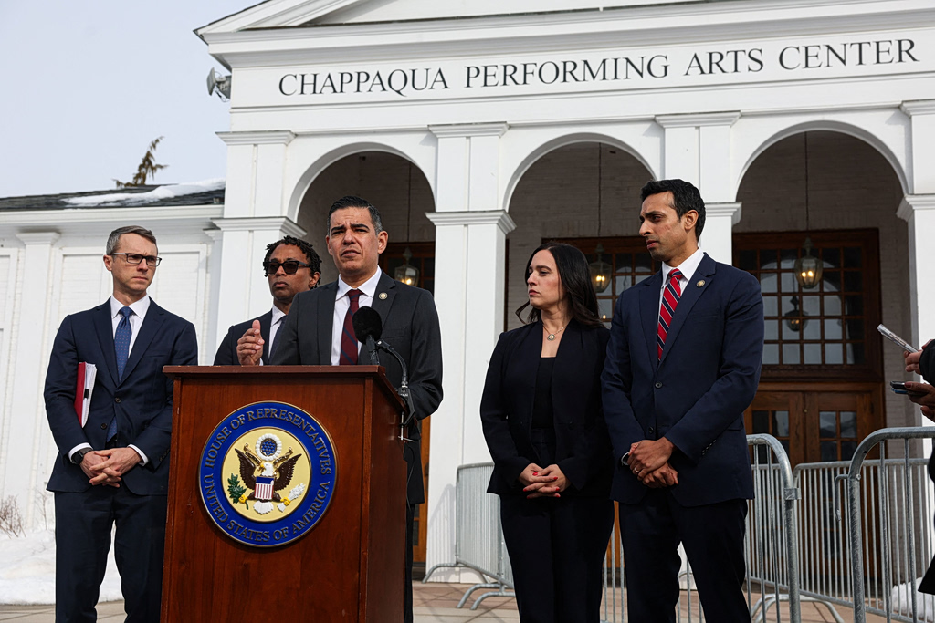 U.S. Representative Robert Garcia (D-CA) speaks on the day of former Secretary of State Hillary Clinton appearance for a deposition in the House Oversight Committee investigation of late financier and convicted sex offender Jeffrey Epstein, at the Chappaqua Performing Arts Center in Chappaqua, New York, U.S., February 26, 2026. REUTERS/Shannon Stapleton
