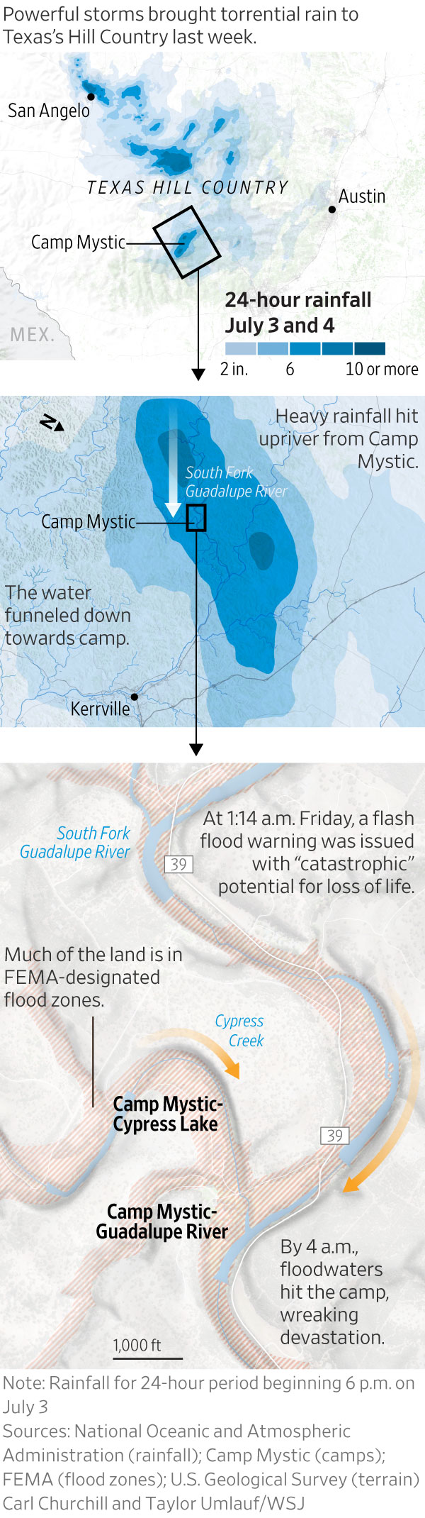 On July 3, the water was clear and the river was a playground. But the forecast was growing darker. At 1:18 p.m., the National Weather Service office for Austin and San Antonio issued a flood watch for portions of south-central Texas through Friday morning, with forecast amounts of one to 3 inches and up to 7 inches possible in isolated pockets.