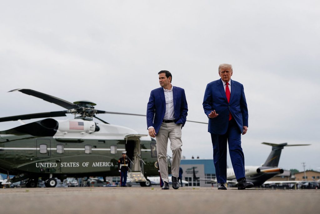 U.S. President Donald Trump walks with U.S. Secretary of State Marco Rubio as he prepares to depart for Hagerstown, Maryland, at Morristown Municipal Airport in Morristown, New Jersey, U.S., June 8, 2025. REUTERS/Nathan Howard