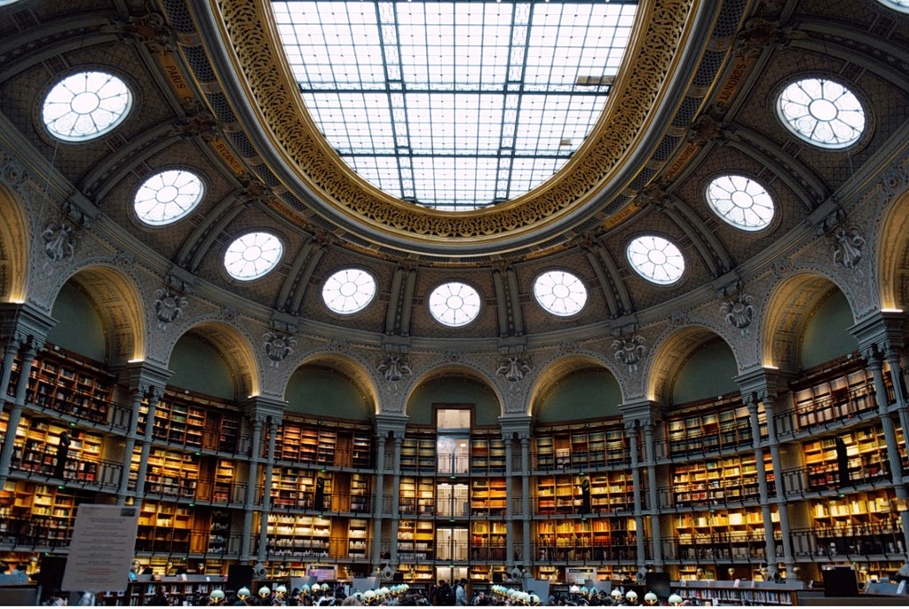 Architect Jean Nouvel hollowed out the 19th-century Haussmann building to easily adapt tech-heavy immersive installations, including a typically trippy James Turrell. To kill some time before cocktail hour, I visited the free Richelieu Library , where I joined other tourists peering into the Labrouste Room, canopied with a Byzantine-inspired nine-dome ceiling.