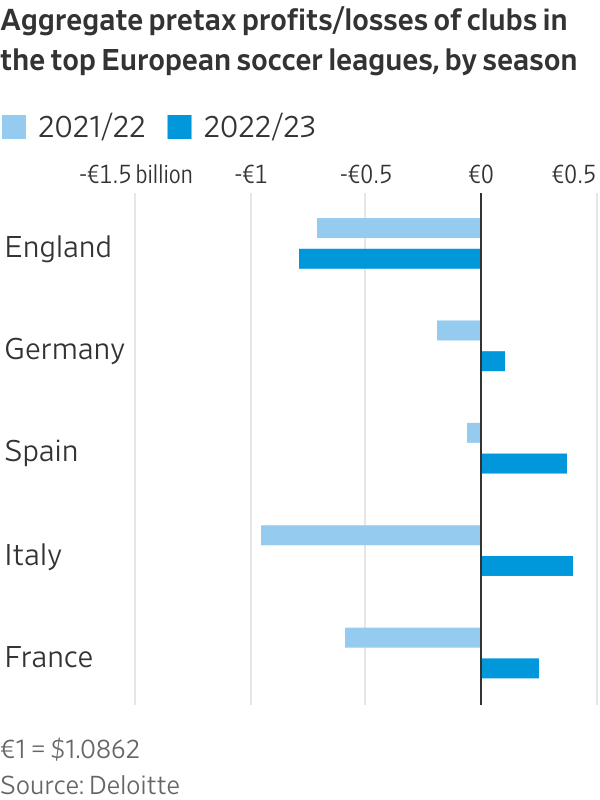 In recent years, European soccer has started enforcing “financial fair play,” which in a roundabout way also edges closer to U.S. sports. Stricter application of these rules allowed Spain’s LaLiga to eke out a profit last season. Still, they often limit spending by small teams more, while failing to restrain clubs backed by profit-insensitive billionaires, often from petrostates, such as Manchester City and Paris Saint-Germain.