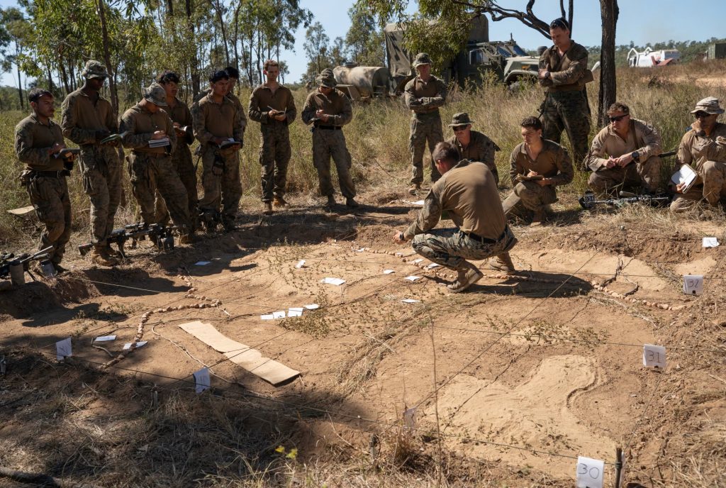 Marines are briefed before a live-fire exercise during Southern Jackaroo. | Photographs by Ioanna Sakellaraki for WSJ