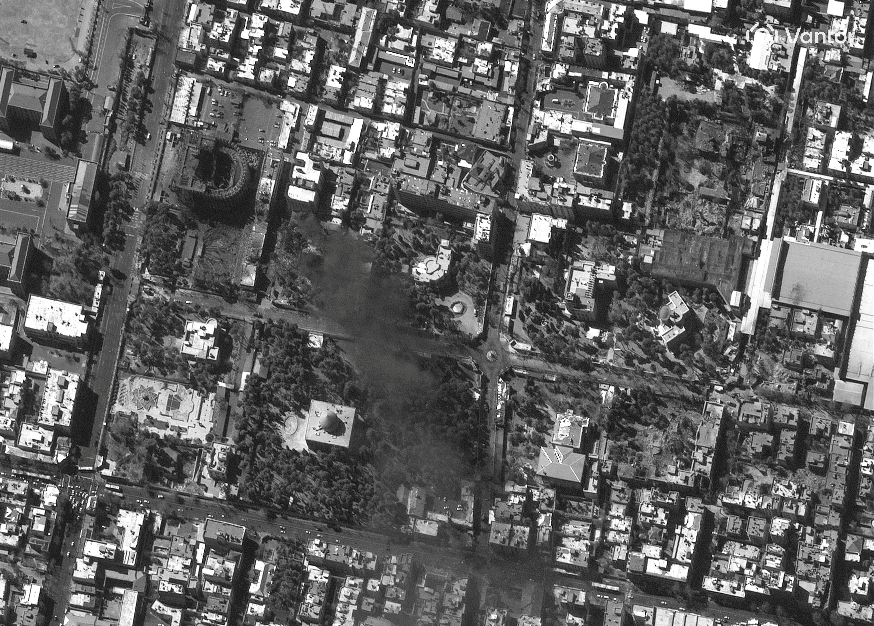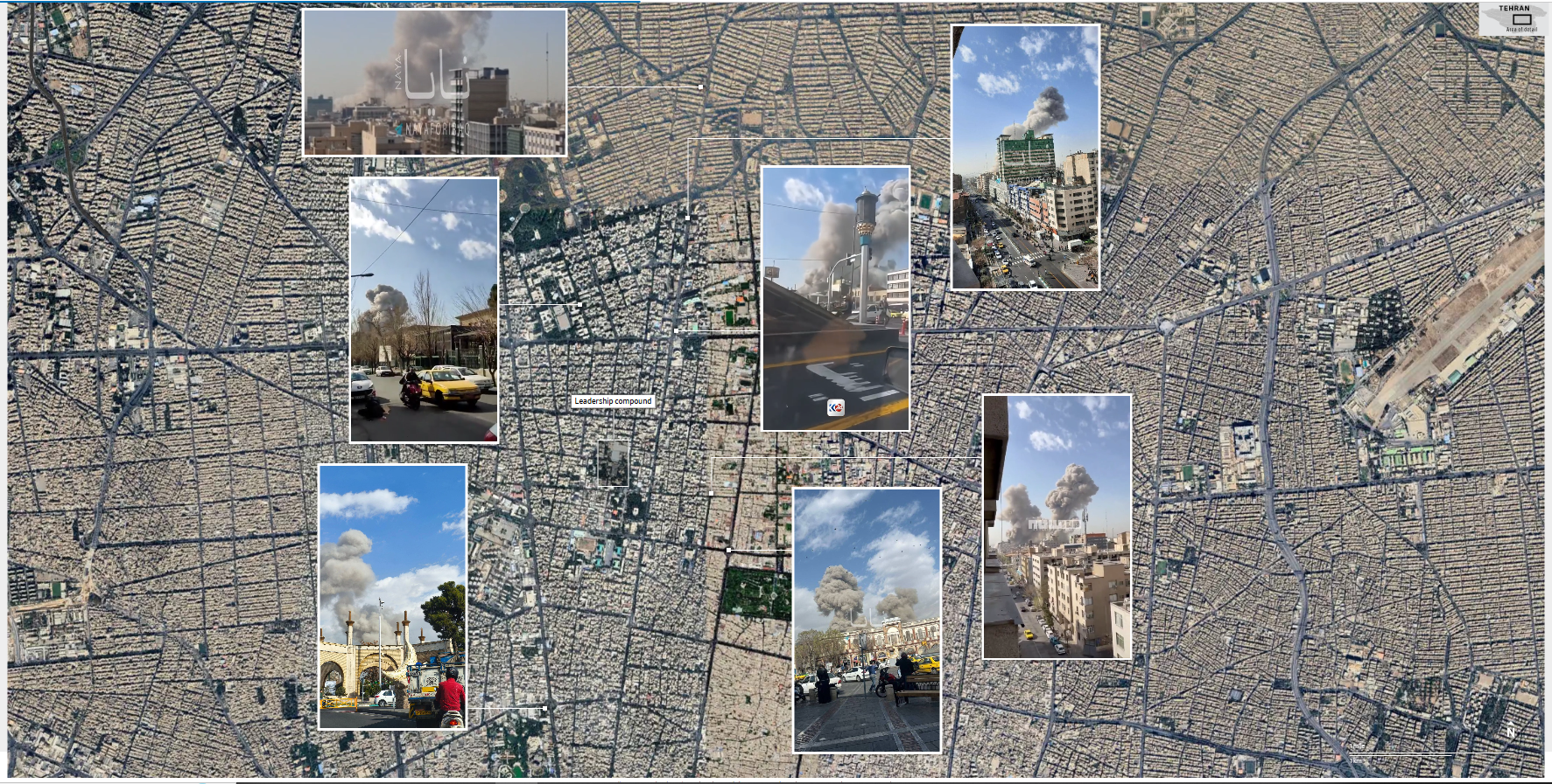 At 5:47 p.m., a satellite image captured smoldering damage at the compound, which includes a vast mosque, a presidential complex and the Iranian leader’s residence.