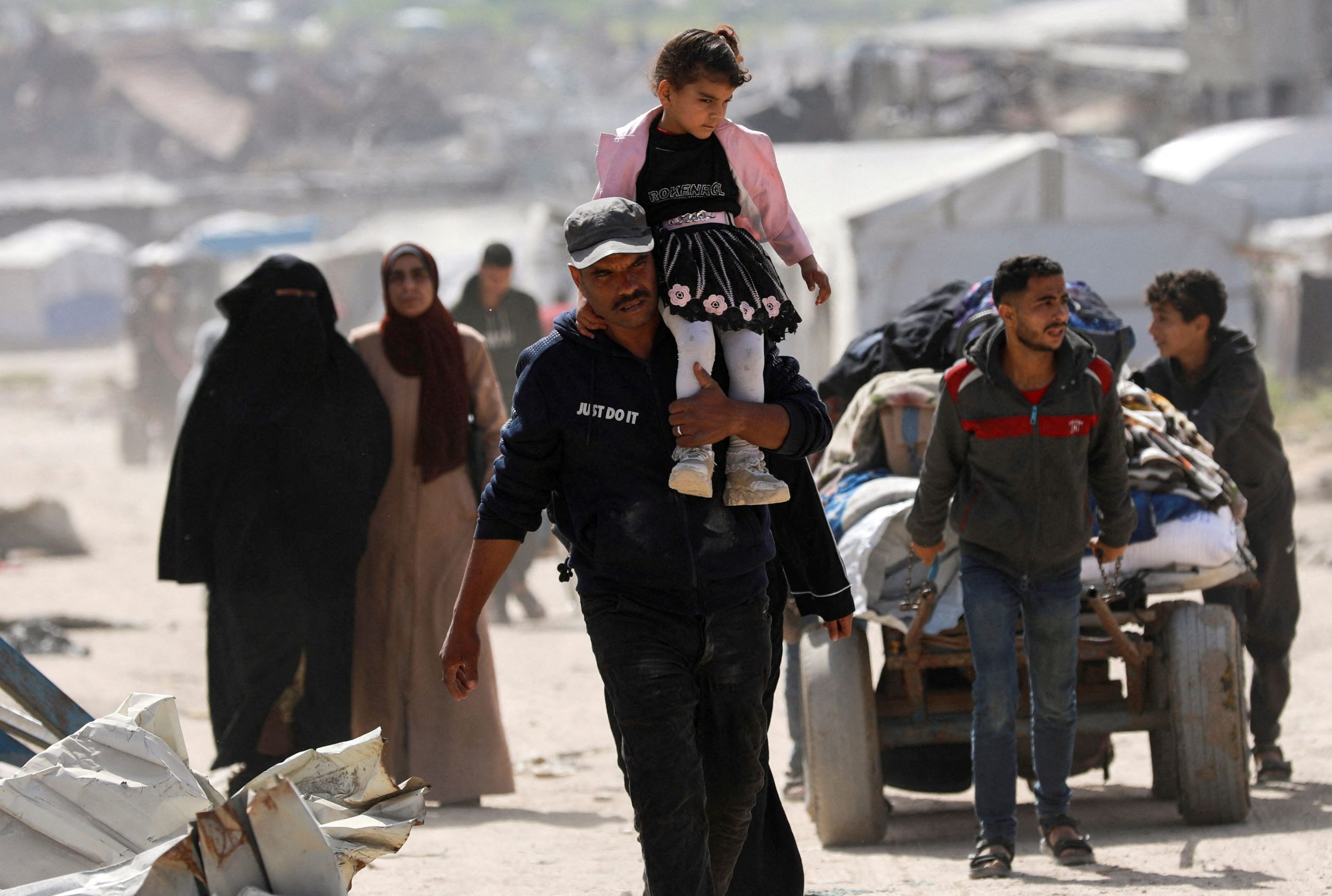Palestinians make their way to flee their homes, after the Israeli army issued evacuation orders for a number of neighborhoods, following heavy Israeli strikes, in Beit Hanoun in the northern Gaza Strip March 19, 2025. REUTERS/Abd Elhkeem Khaled TPX IMAGES OF THE DAY