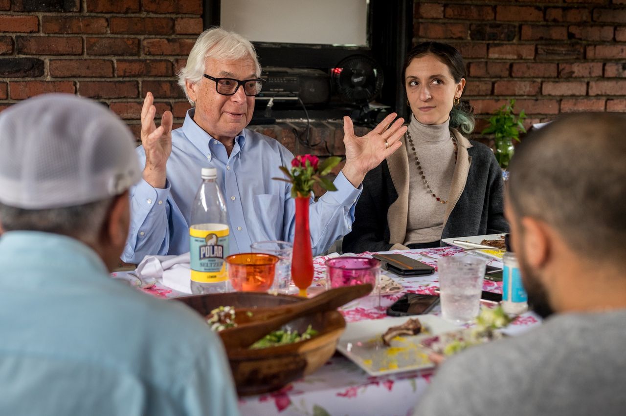 At dinner, he said that though he wishes Biden would do more to rein in Israel, he views the president as “a pretty good guy, surrounded by good people who are doing the best they can to figure this out.”