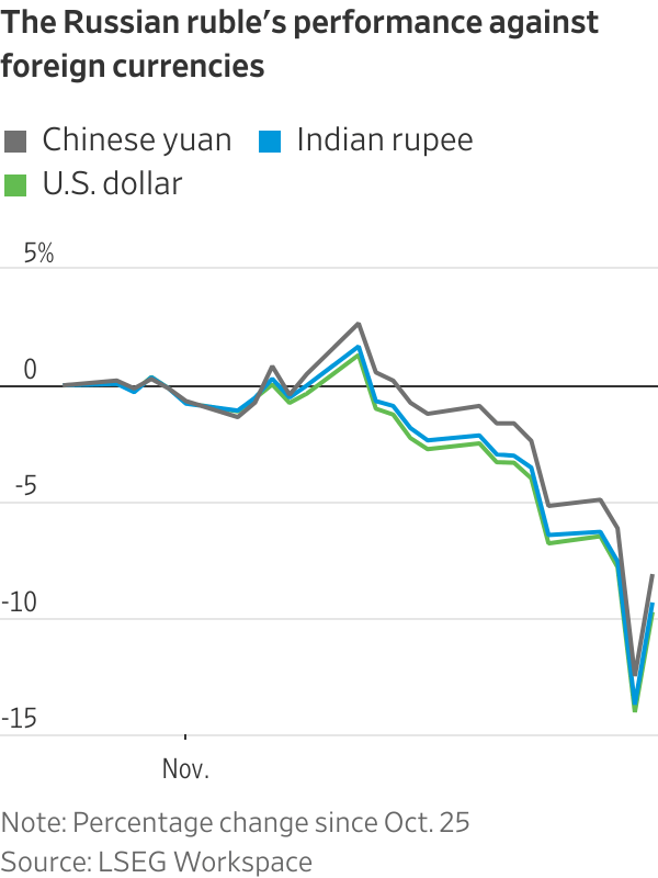 Russia has traded more in its own currency and so-called friendly currencies , such as China’s yuan and India’s rupee. Russian businesses have also found workarounds by using cryptocurrencies, or by bartering. But access to dollars remains critical.