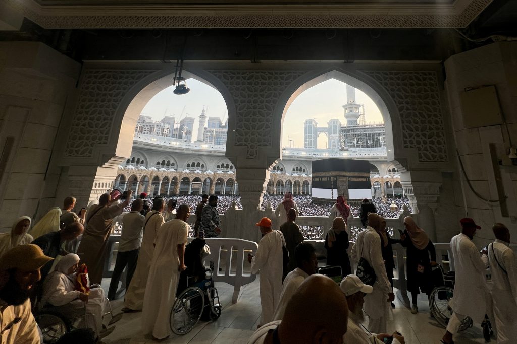 People watch as Muslim pilgrims circle the Kaaba as they perform Tawaf at the Grand Mosque, during the annual haj pilgrimage, in Mecca, Saudi Arabia, June 18, 2024. REUTERS/Mohammed Torokman