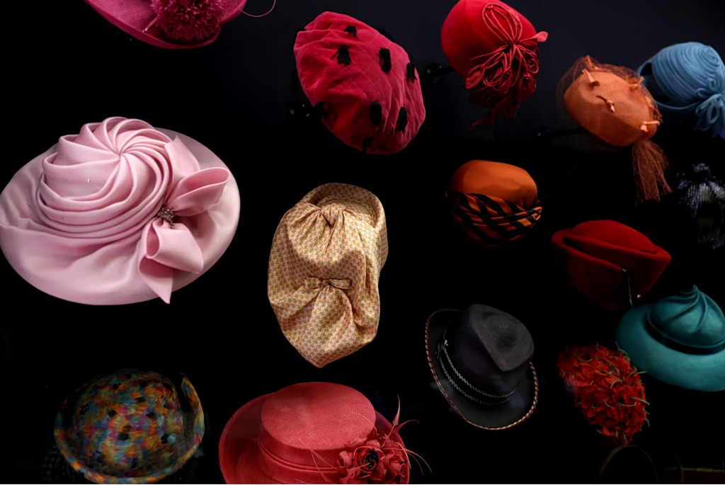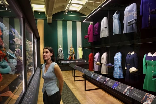 A Royal Collection Trust poses beside an item forming part of “Queen Elizabeth II: Her Life in Style”, an exhibition of clothing and outfits marking the centenary of the late queen’s birth, in The King’s Gallery at Buckingham Palace, London, Britain, April 9, 2026. REUTERS/Toby Melville