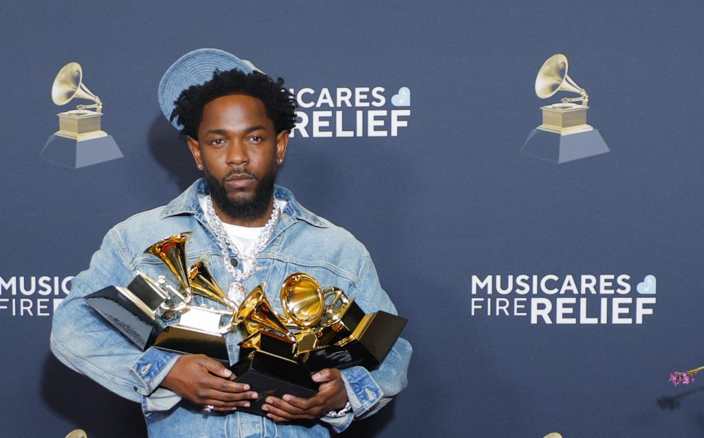 Kendrick Lamar, winner of the Record Of The Year, Best Rap Performance, Best Rap Song, Best Music Video, and Song Of The Year awards, poses in the press room during the 67th Annual Grammy Awards in Los Angeles, California, U.S., February 2, 2025. REUTERS/Mike Blake