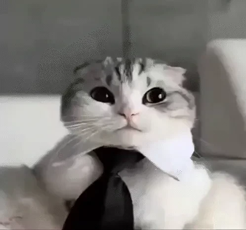 At one point, he asked for some technical details. He followed up with the cat meme: a six-second clip that showed a hand adjusting a necktie on a fluffy gray cat.