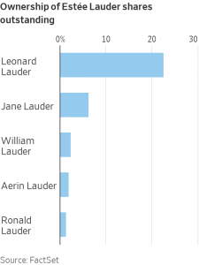 Getting the Lauder family on the same page about succession is essential, given that its members still hold an ownership stake of nearly 35%, including supervoting shares that collectively give them control over more than 80% of the voting power. There is also an agreement that Leonard and his brother, Ronald, each get to fill two seats on the board, which currently has 15 members. Leonard may continue to attend board meetings as chairman emeritus, and his younger son, Gary, is joining the board.