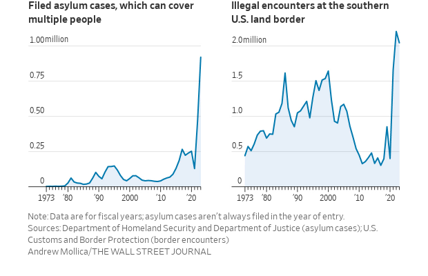 Even if an application is ultimately rejected, migrants by then have put down roots, often had American children and are rarely deported because of the costs and logistical challenges. They are left in limbo—they lose the right to work legally but aren’t kicked out.