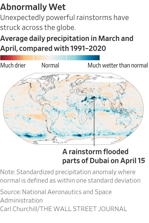 Deadly dam bursts in Kenya and Brazil, a highway sliding down a mountainside in southern China, desert airport runways underwater in Dubai , mining pits flooded in Australia: Large parts of the world are awash.