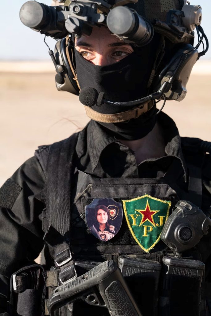 They are part of the Kurdish-led Syrian Democratic Forces, who with U.S. support helped defeat Islamic State six years ago and now control Syria’s northeast, about a third of the country. The women wore flak jackets and night-vision goggles, carried M4 rifles, and jumped out of American armored vehicles. A female commander issued orders to her male subordinates.