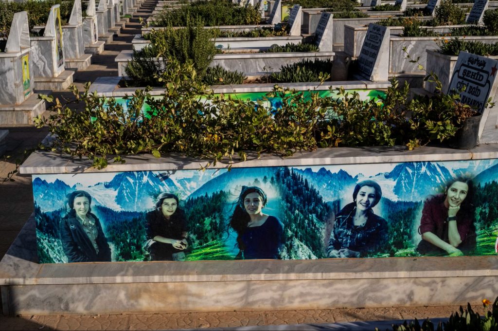 In the graveyards of Hasakah, a small city in northeastern Syria, well-kept tombstones are emblazoned with colorful images of female fighters killed in a decade of battles against Islamic State and other enemies.