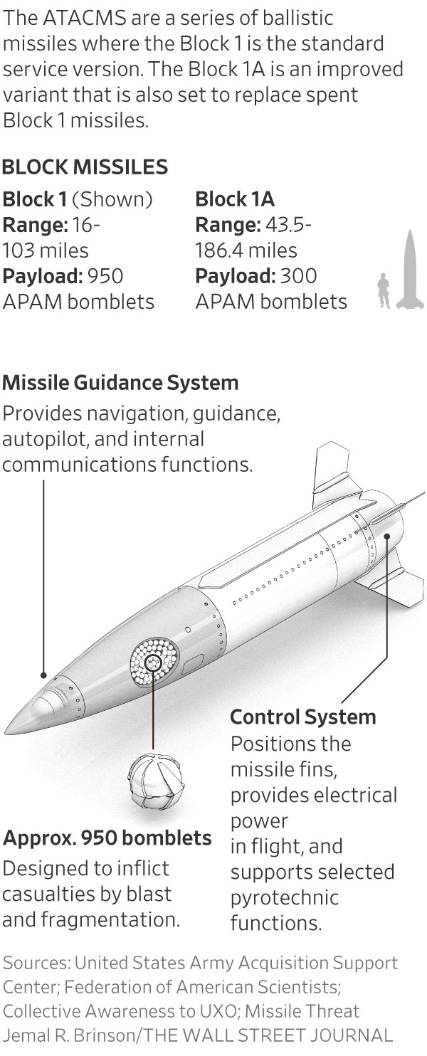 Ukraine used the Army Tactical Missile System, known as ATACMS, to strike an ammunition storage facility in Russia’s Bryansk region, a Ukrainian official said. The strike came just days after President Biden gave approval for their use.