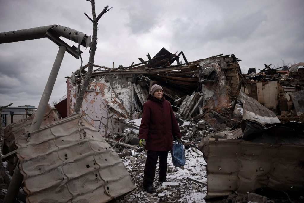 A woman stands in front of the house of a relative that was destroyed in a Russian missile strike, amid Russia’s attack on Ukraine, in Selydove near Avdiivka, Ukraine, February 19, 2024. REUTERS/Thomas Peter