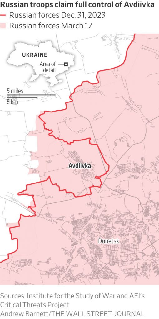 The following day, Ukraine announced it had withdrawn from Avdiivka to preserve lives. The Biden administration said the fall of the city was the price of Congress’s failure to send more aid to Ukraine. It was the biggest victory for Moscow in months.