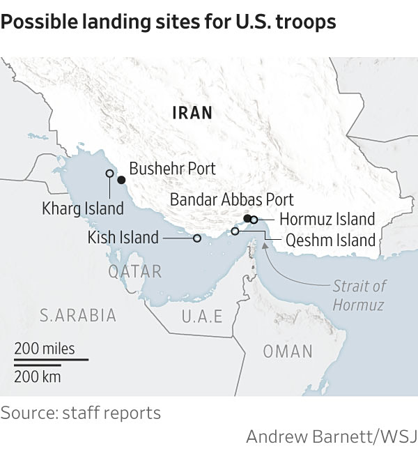 Positioning Marines on islands off Iran’s coast, rather than inside Iran itself, could be a loophole that would allow Trump to claim he has kept his promise not to put American boots on the ground in Iran.