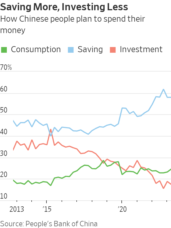 Chinese citizens are spending less, saving more and shying away from risky investments. Household savings in the country reached $19.83 trillion by February, the highest figure on record, according to data from the central bank. Consumer confidence is near its lowest level in decades.